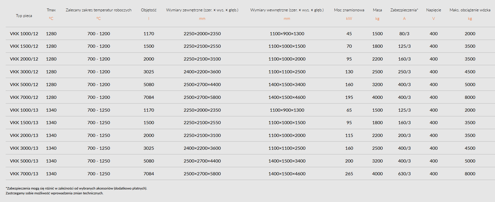 - spełnienie wymogów w zakresie rozkładu temperatury dla pieców o wielkości VKNC 7000 i większych